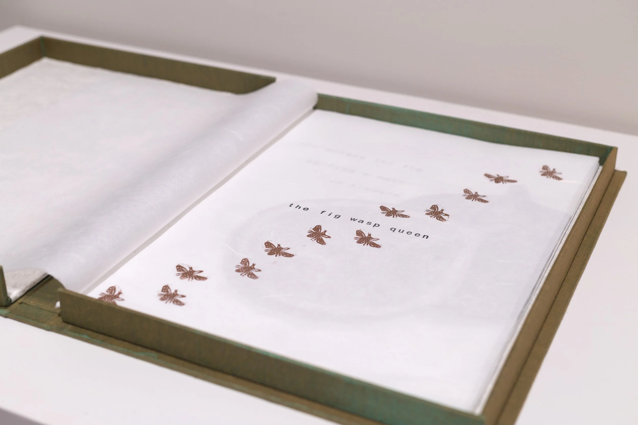The Fig Wasp Queen, Block print and graphite on unryu paper, 2021