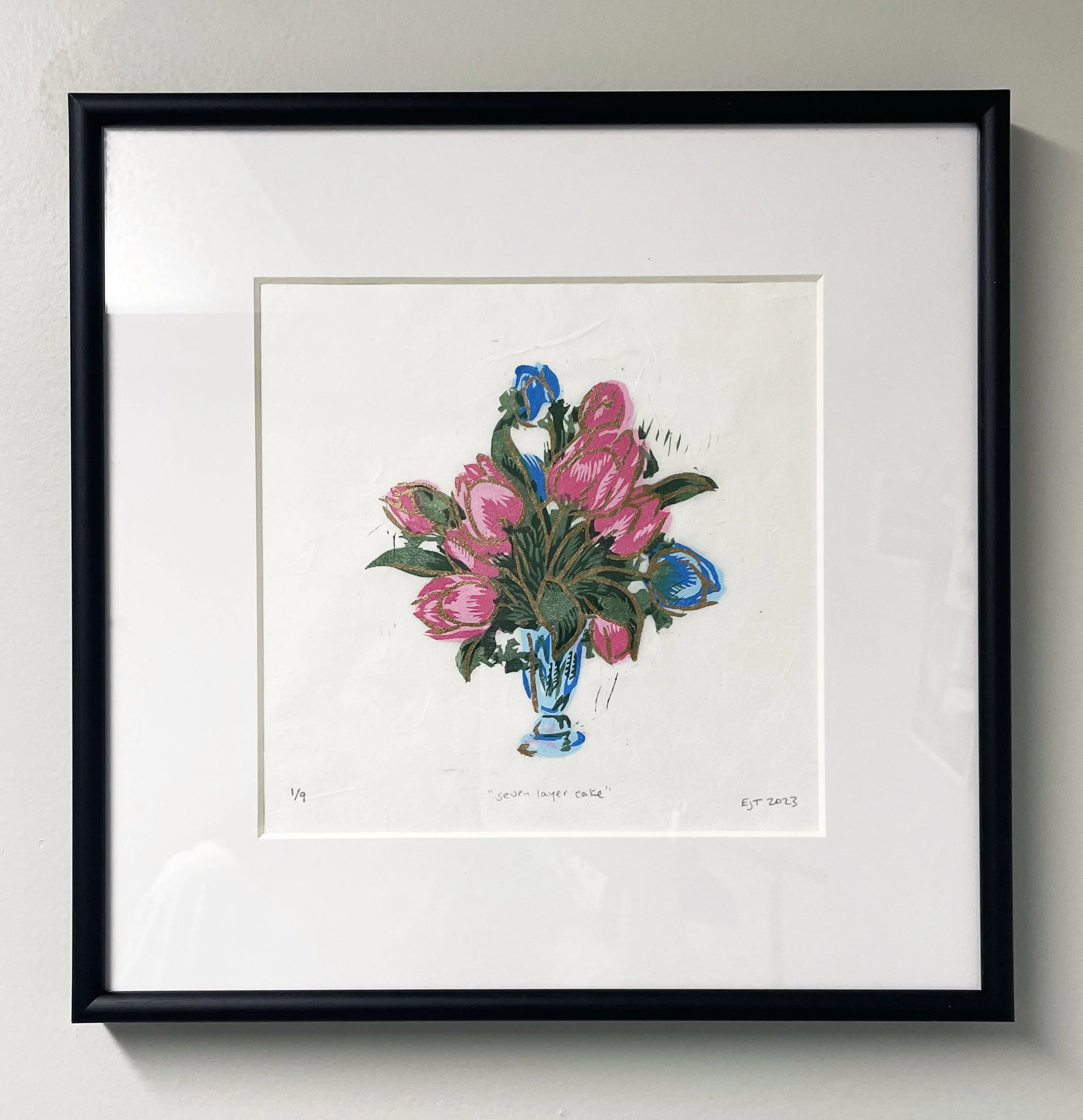 Seven Layer Cake, Block print on unryu, 8"x8", 2023